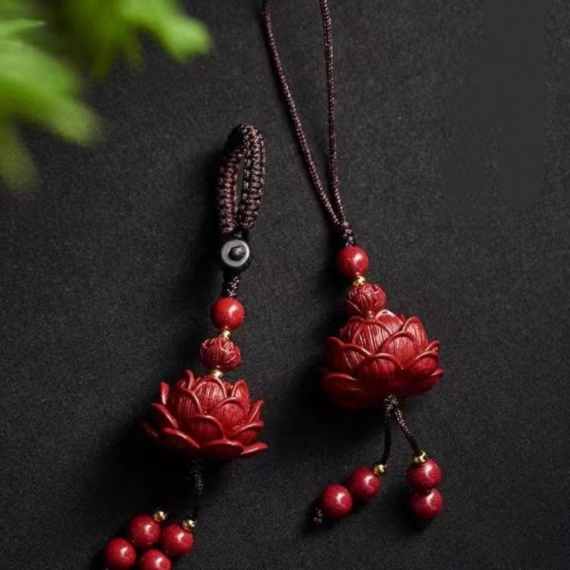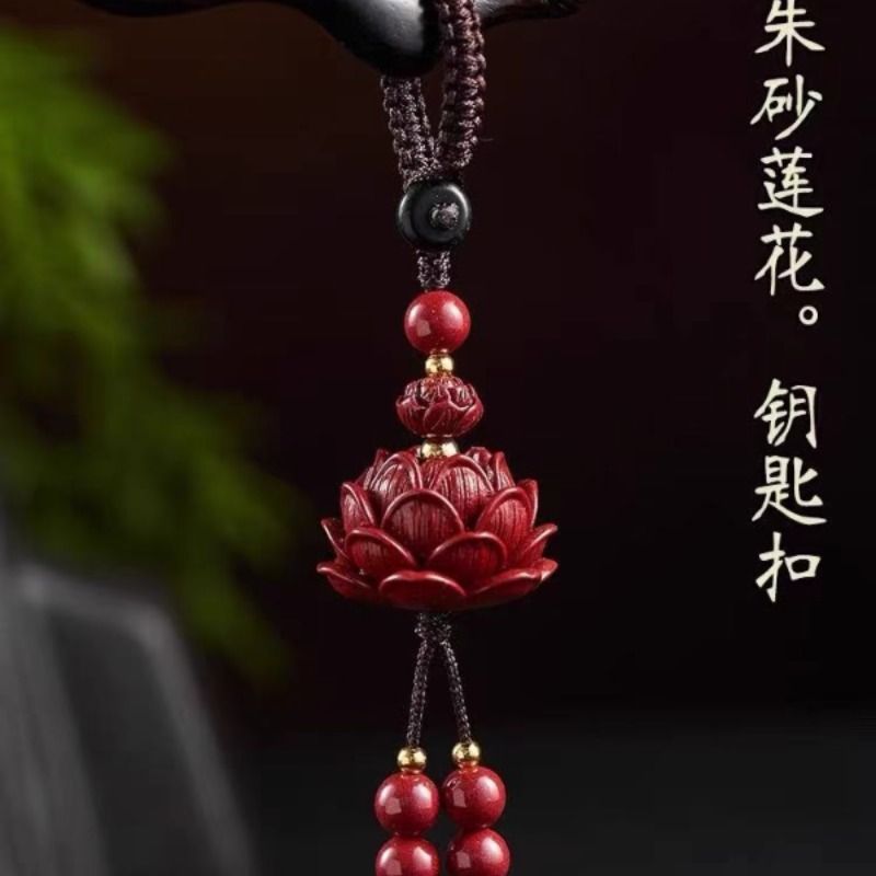 高含量朱砂莲花汽车钥匙扣挂件男女士紫金砂好运连连手机链包挂饰