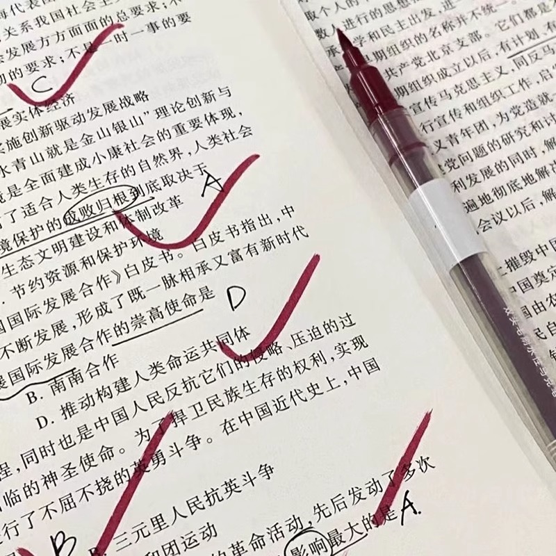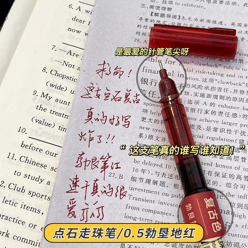 点石红笔系列小红书同款教师专用高颜值批改作业红笔ins勃艮第红学生速干红色中性笔直液复古暗红软头柔绘笔