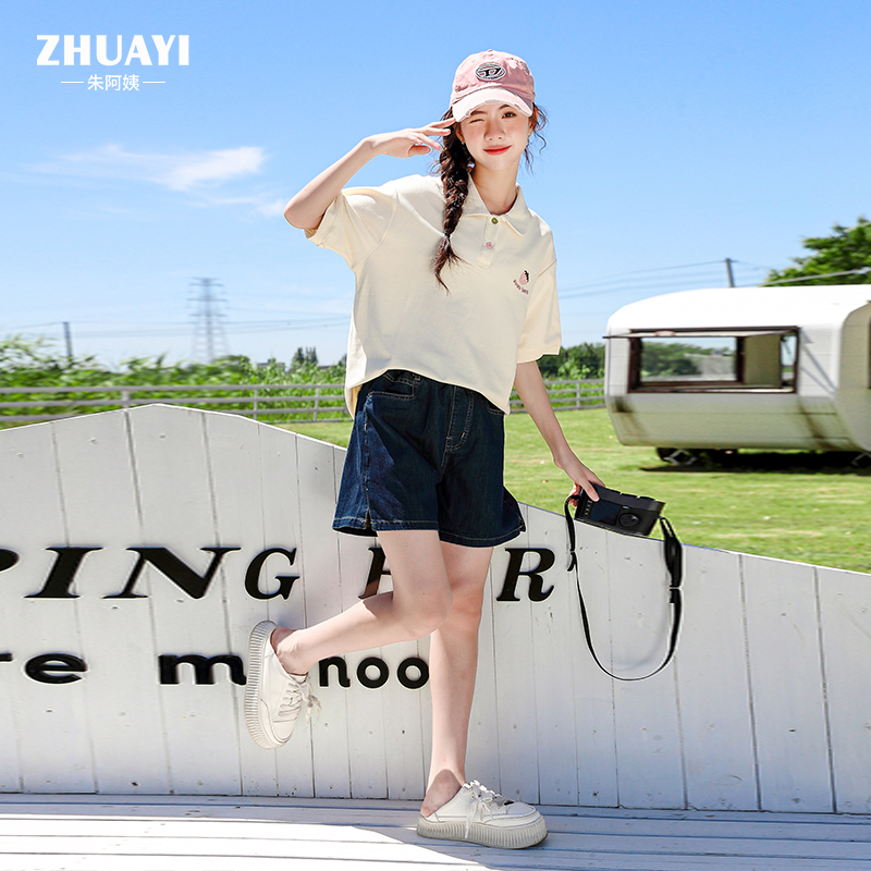 女大童短袖t恤夏季2025新款女童初中生夏装polo衫青少年半袖上衣