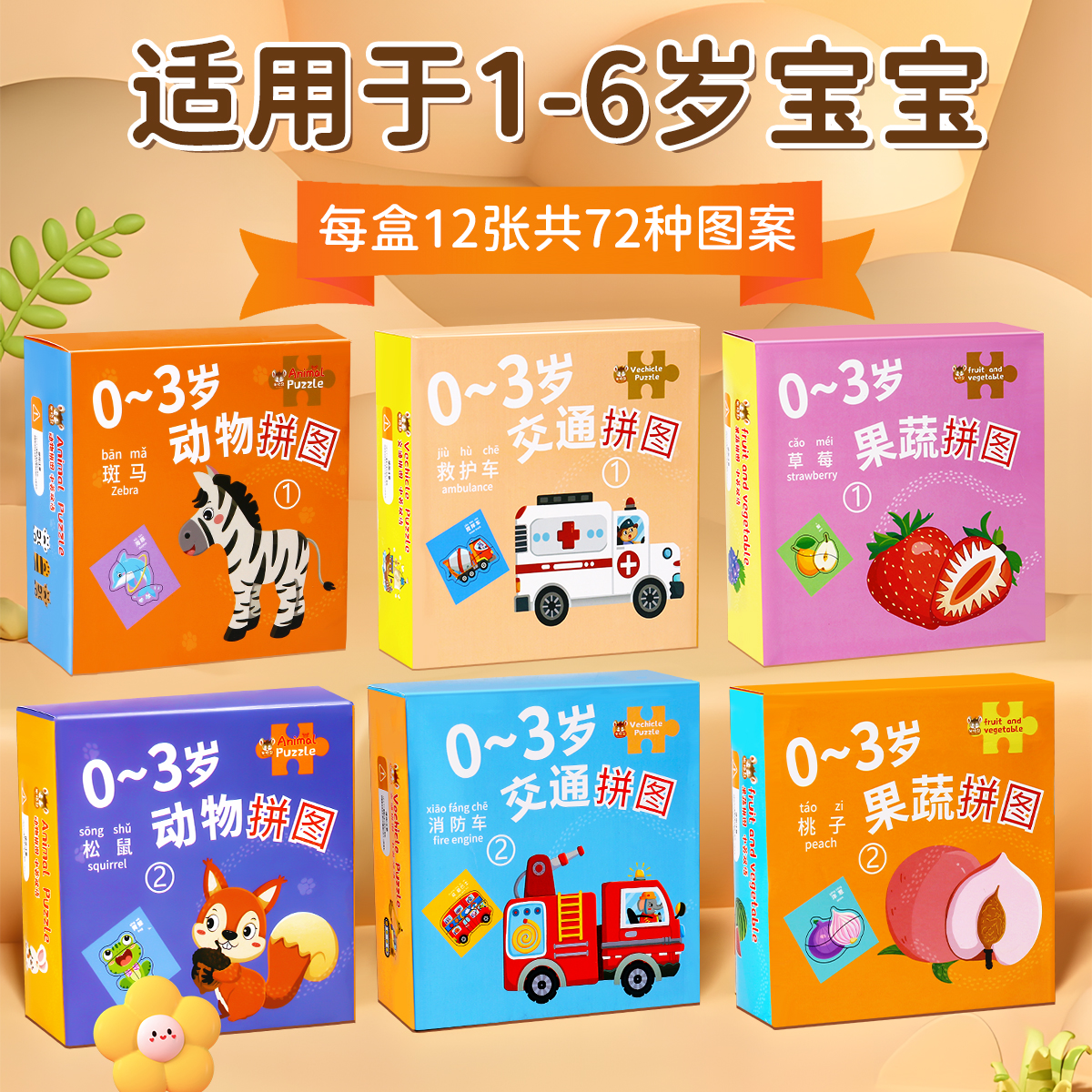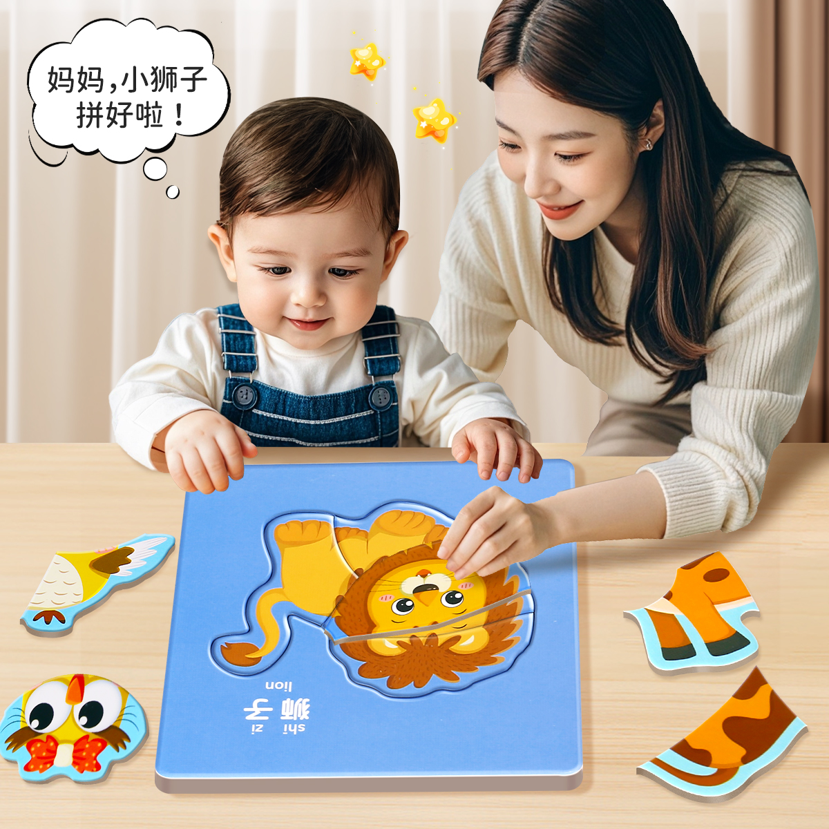 儿童益智拼图0一1岁半2到3岁小宝宝幼儿动物平图蒙氏早教智力玩具