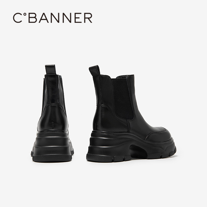 千百度厚底拼接切尔西靴女2025冬季新款增高烟筒靴保暖粗跟短靴子