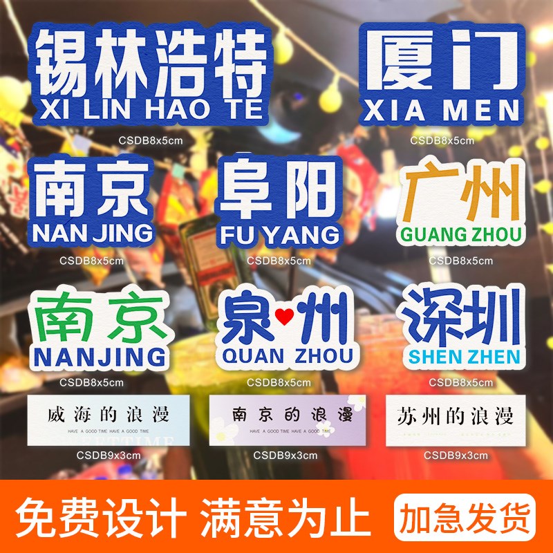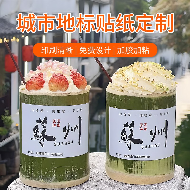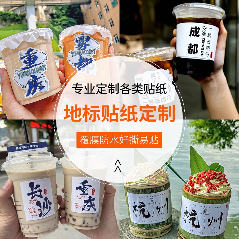 城市打卡奶茶饮料地名防水不干胶贴纸定制网红咖啡二维I码logo地