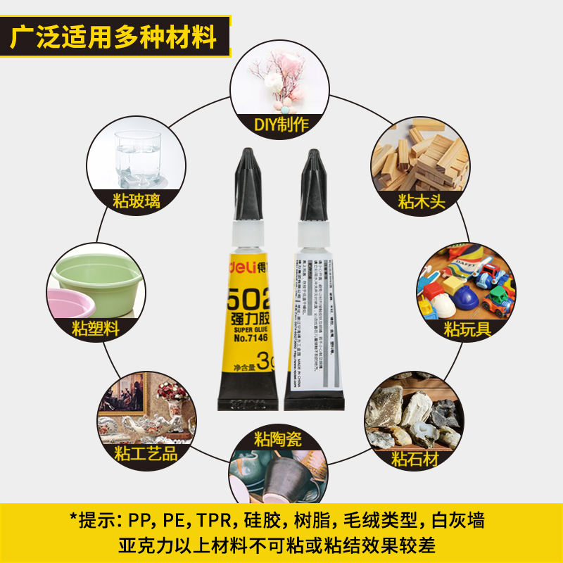 得力502强力胶水特快粘合剂干520胶水塑料金属陶瓷木材木头diy手工多功能液体胶粘得牢修补沾鞋子专用万能胶