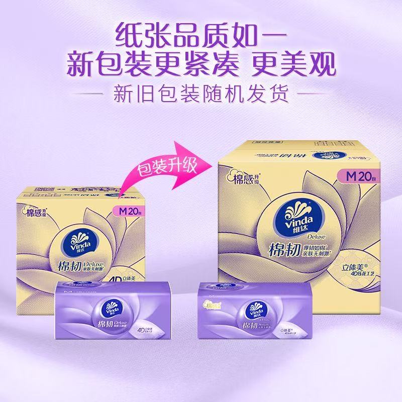 维达棉韧抽纸M码20包立体美整箱实惠装家用100抽卫生纸面巾纸抽