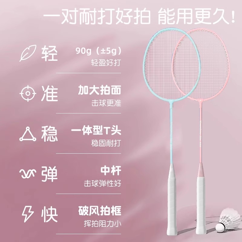 羽毛球拍成人碳素纤维男女专业正品旗舰店儿童耐打超轻单双拍套装