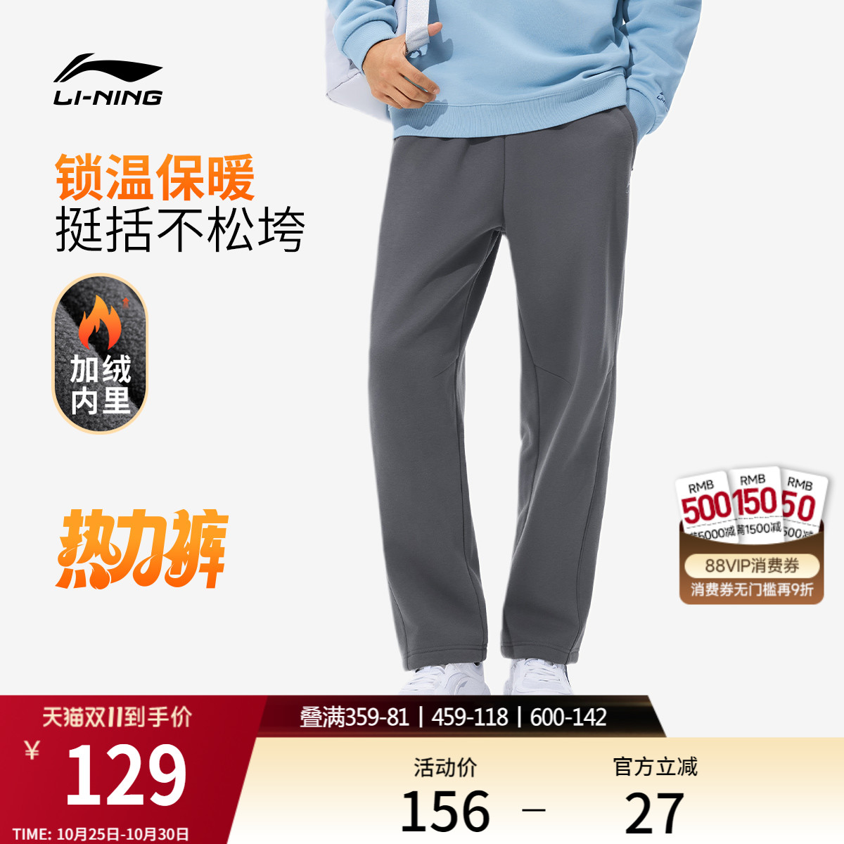 李宁热力裤丨卫裤新款男秋冬跑步长裤加绒直筒休闲裤针织运动裤