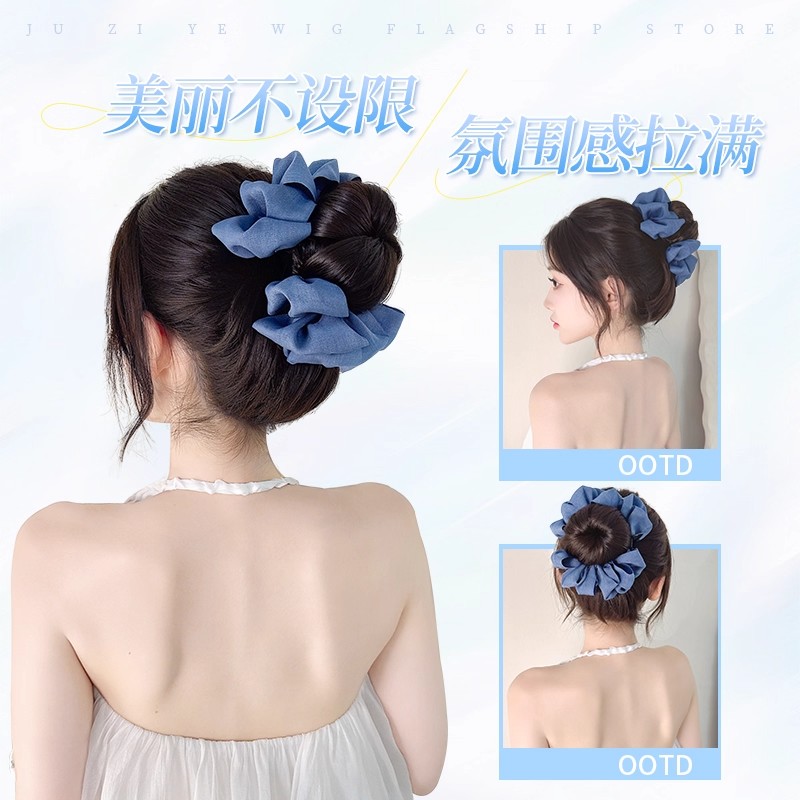 丸子头假发女高扎蝴蝶结花苞头盘发神器抓夹仿真发增发量发圈发型