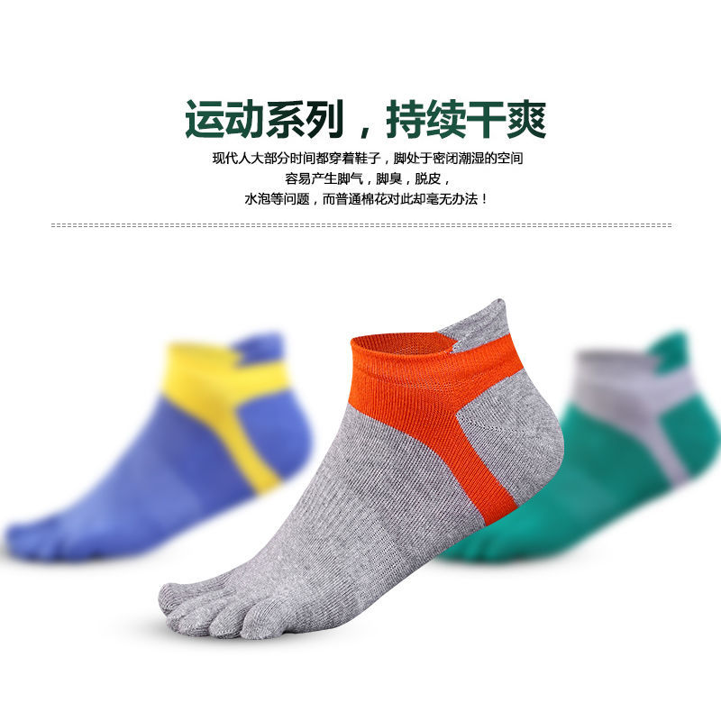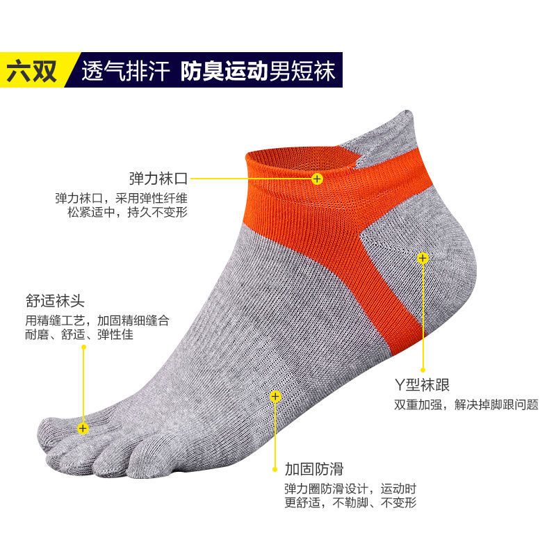 五指袜男纯棉防臭全棉分趾袜运动脚趾袜隐形袜男防滑短筒吸汗脚跟
