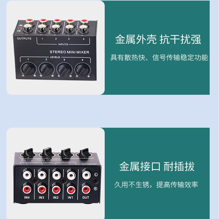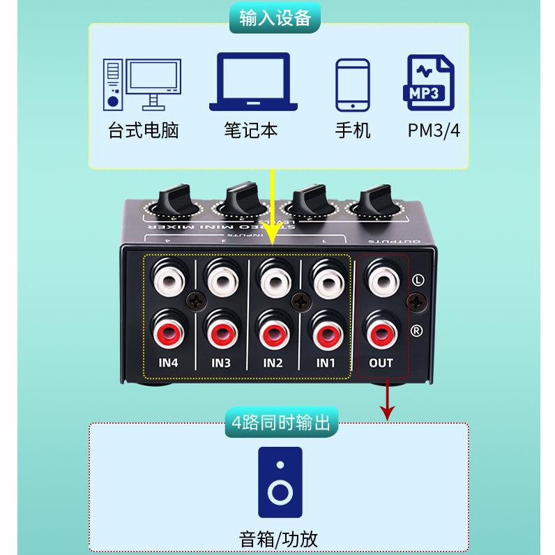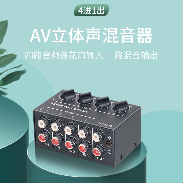 红白音频合并AV音频转换器四进六进一出RL切换器同时输入同时输出