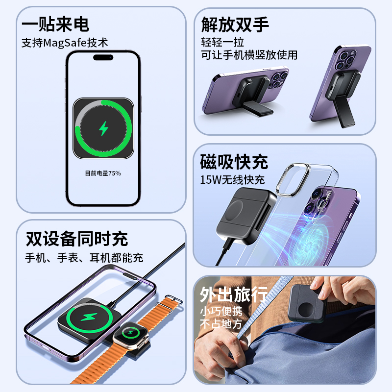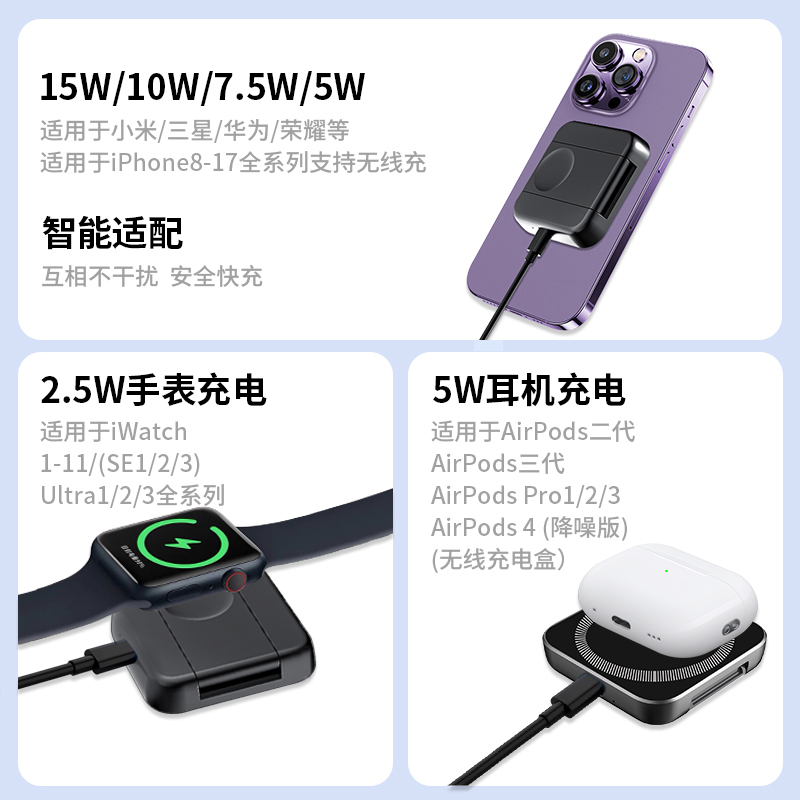 台微电无线充电器磁吸适用苹果手机三合一magsafe支架桌面底座手表二合一便携iphone17/16/15Pro全家桶watchS