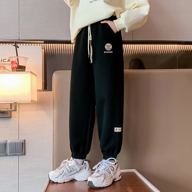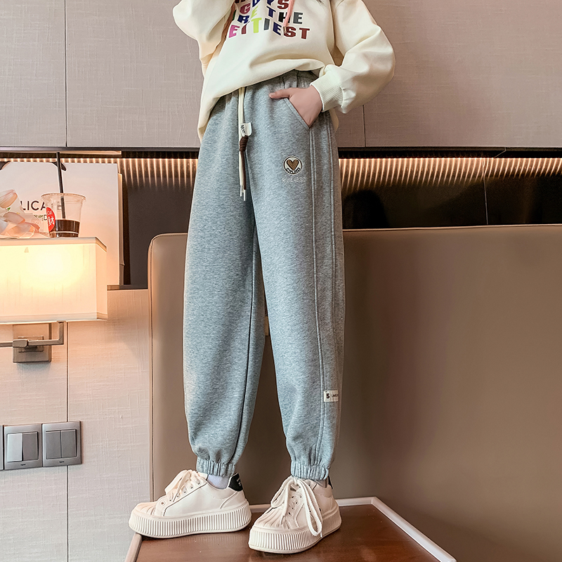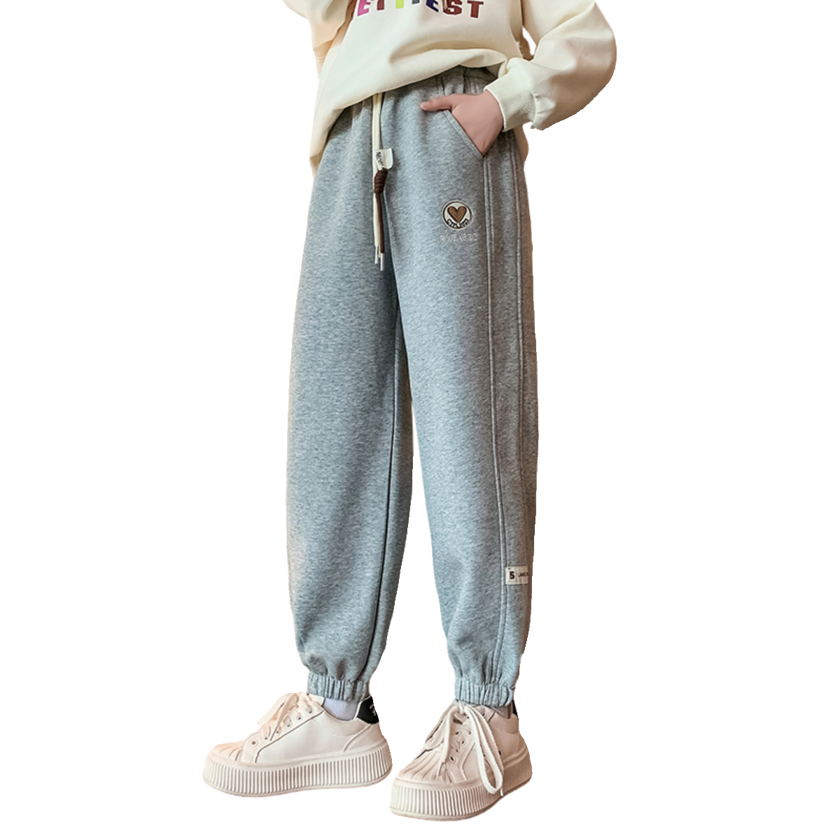 女童卫裤新款2025大童儿童休闲灰色运动裤春秋宽松束脚长裤初中生