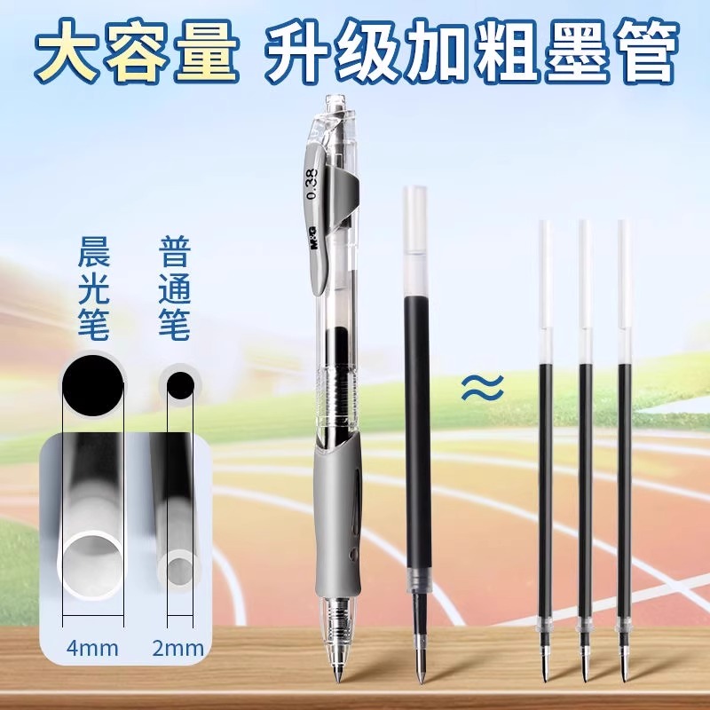 晨光按动中性笔0.38mm小清新学生用考试水笔芯蓝色黑色笔签字笔红笔教师用会议笔碳素子弹头办公按压式中性笔