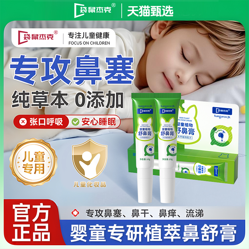 袋鼠杰克儿童鼻舒膏涂抹鼻腔不适提神醒脑成人通气贴鼻塞神器专用