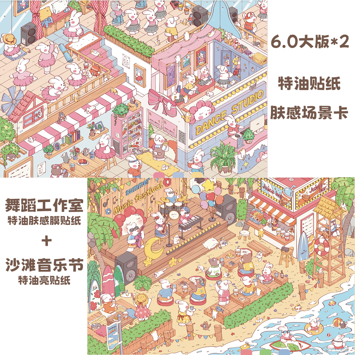 送镊子)造景贴纸微缩场景合集本贴纸本立体换装贴纸女孩儿童diy防水贴画亲子小游戏解压小屋玩具装饰小图案