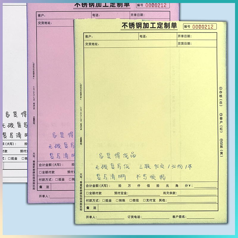 一二三联不锈钢板定制品加工单订货开收据发货明细账本材料登记表