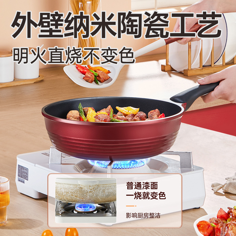 【凸底包退】炊大皇加高平底锅不粘锅煎锅专用锅煤气电磁炉炒菜锅