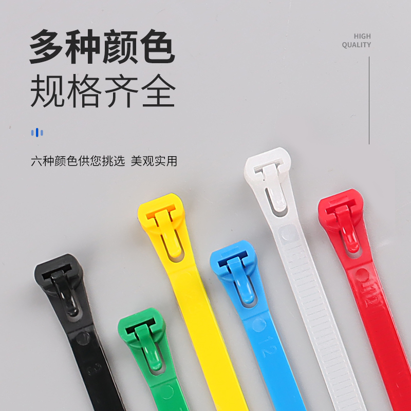 可重复使用可松式尼龙扎带束线带捆扎带塑料封条固定器扎线带绑扎带自锁式拉紧器捆绑带卡扣彩色批发活扣扎带