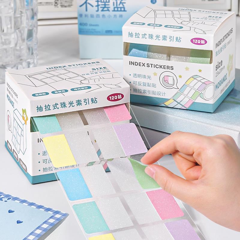 抽拉索引贴便利贴小条透明珠光便签纸书签标记标签贴高颜值ins风重点小卡出卡可书写初中生专用分类有粘性A2