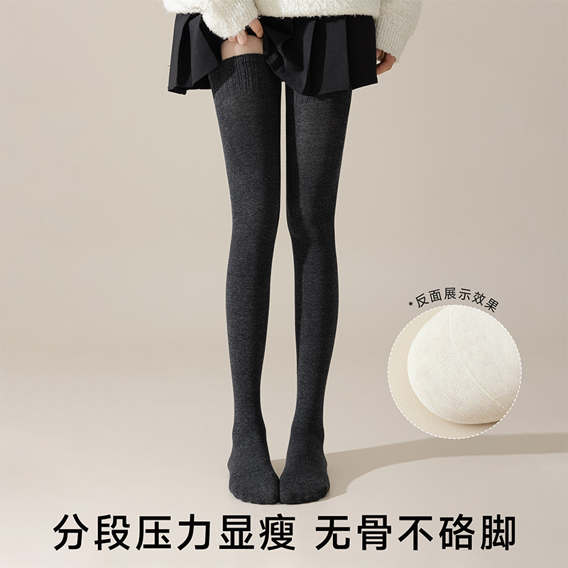 过膝袜子女高筒袜秋冬季加绒加厚保暖大腿纯色冬天半截长筒袜膝盖