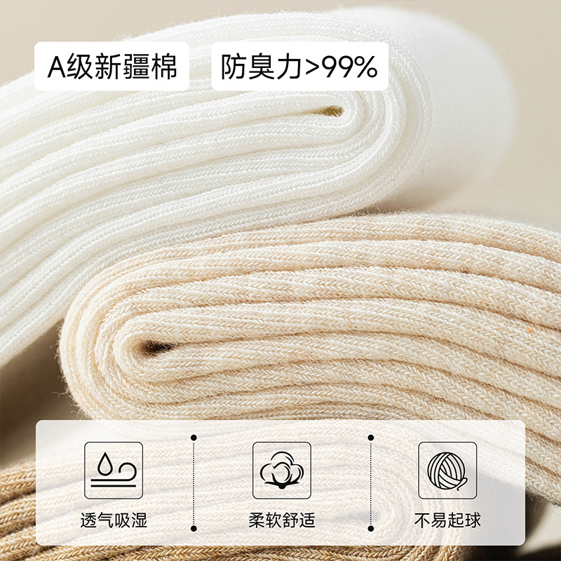 5双装 往往精梳棉质3A抗菌女士袜子中长筒袜纯色休闲男袜秋冬季