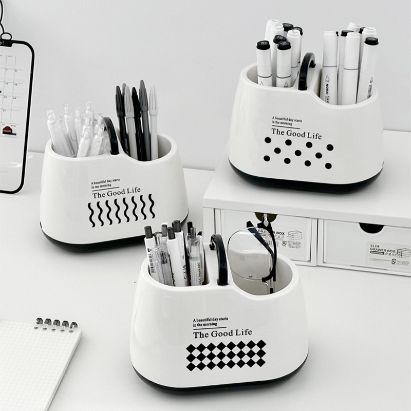 笔筒收纳盒办公室桌面轻奢高级感创E意简约笔架学生书桌大容量笔