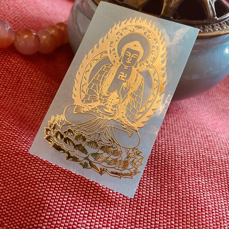 黄金色国风笑面弥勒佛金属手机后背壳贴纸南海观音地藏药师如来佛