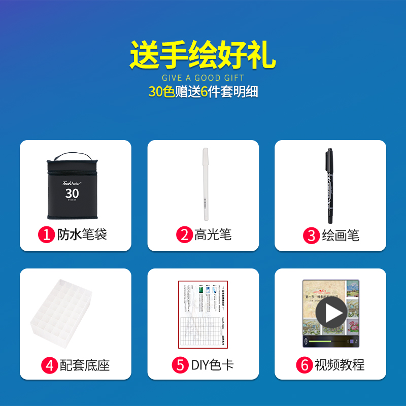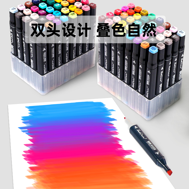马克笔套装touch正品30色学生初学者绘画设计酒精油性双头动漫肤色绘画彩色水彩画笔带底座 全套1000色