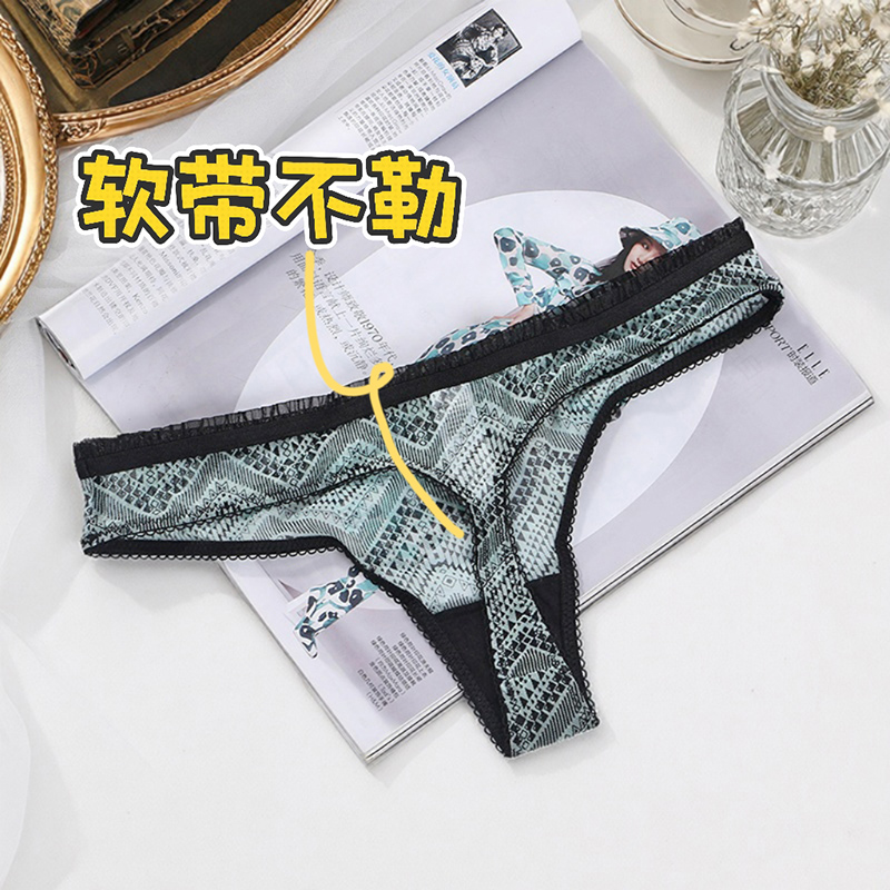 丁字裤透明诱惑 薄款蕾丝水钻网纱透气纯欲无痕内裤女士性感舒适