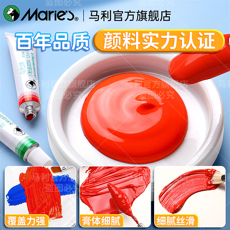 马利牌水彩水粉画颜料套装小学生用品24色36色12儿童可水洗幼儿园专用全套绘画色彩工具美术画画官方旗舰店