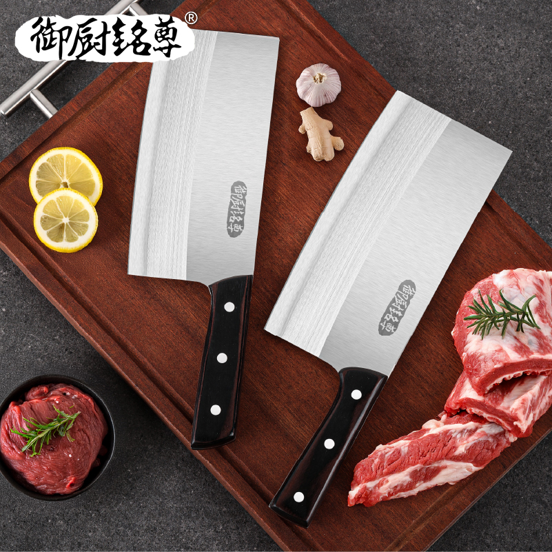 御厨铭尊手工锻打菜刀锋利切肉切片刀具中式实木手2合一套装