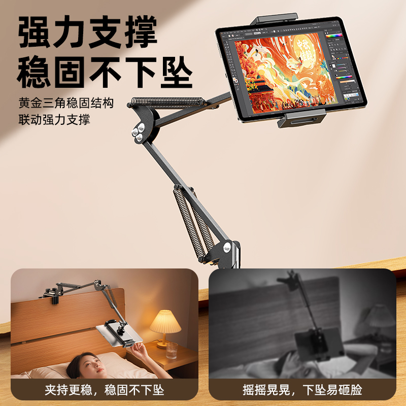 【稳固不晃】金属床头懒人手机支架躺着看电视支撑架万能型悬臂ipad平板支架夹