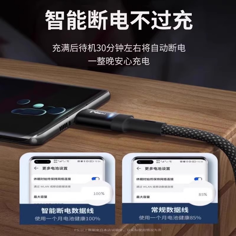 快充数据线智能能适自动断电Typec6A充电线适用华为vivo小米oppo手机tpyec充电线器tpc安卓tapyc100W超级冲