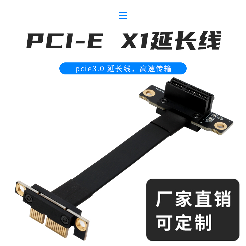 PCIE延长线1x转接线声卡网卡90度角小插槽x1扩充卡竖装连接线无失