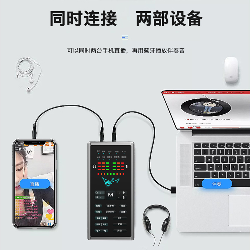 手机直播无线声卡高品质双手机直播蓝牙声卡适用华为苹果小米手机