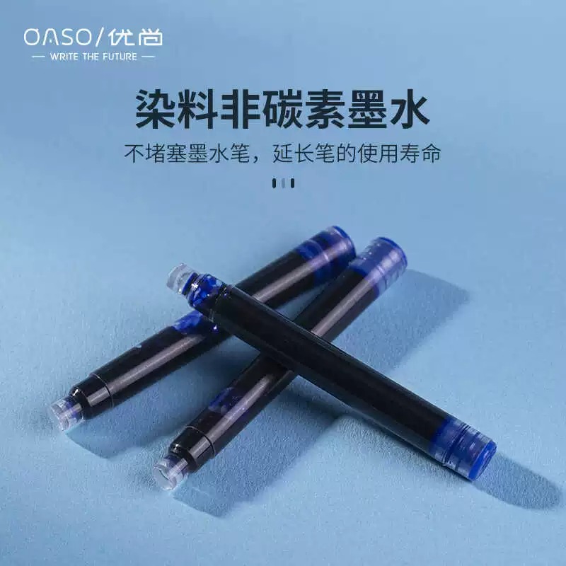 优尚(oaso)钢笔墨囊3.4MM通用大口径非碳素黑色蓝色蓝黑色学生替换一次性墨胆