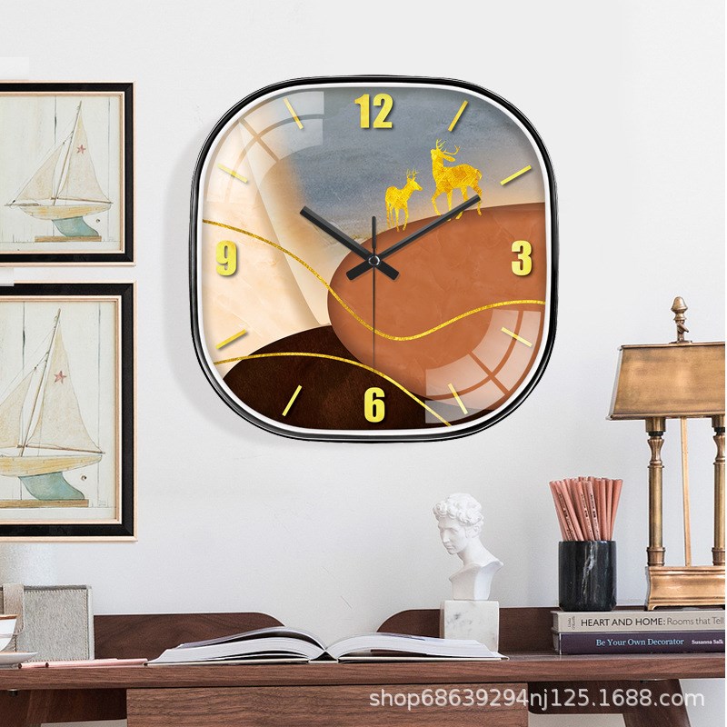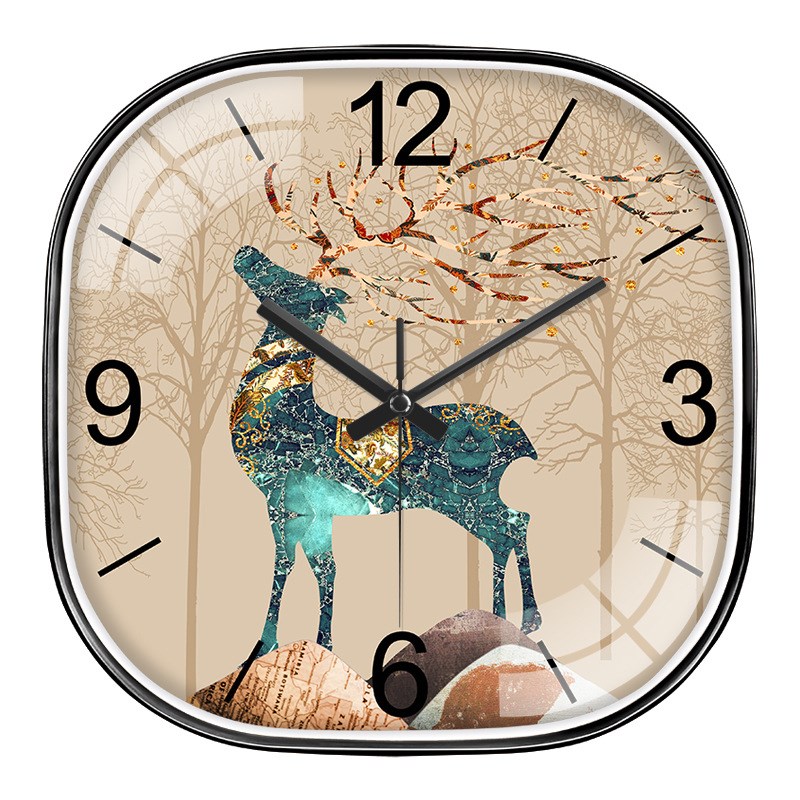 麋鹿挂钟新中式客厅家用时尚挂表挂墙自动对时钟表电波钟免打孔