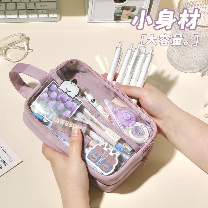 5层超大容量透明笔袋初中等专业学校用女孩子ins风日系高颜值女生小学生简约高中生中学生文具盒铅笔盒多层文