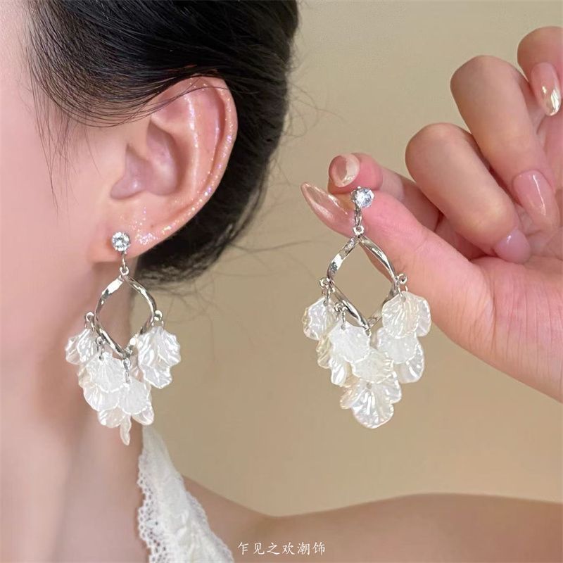 法式高级感贝壳流苏花瓣耳环女款夏天海边度假风耳坠巨好看的耳饰