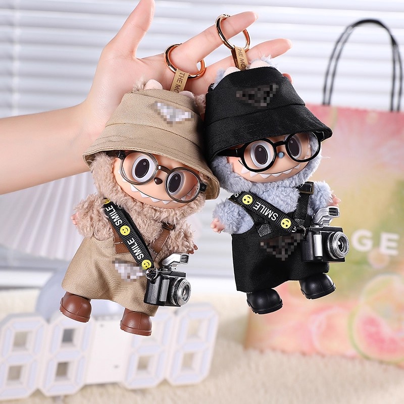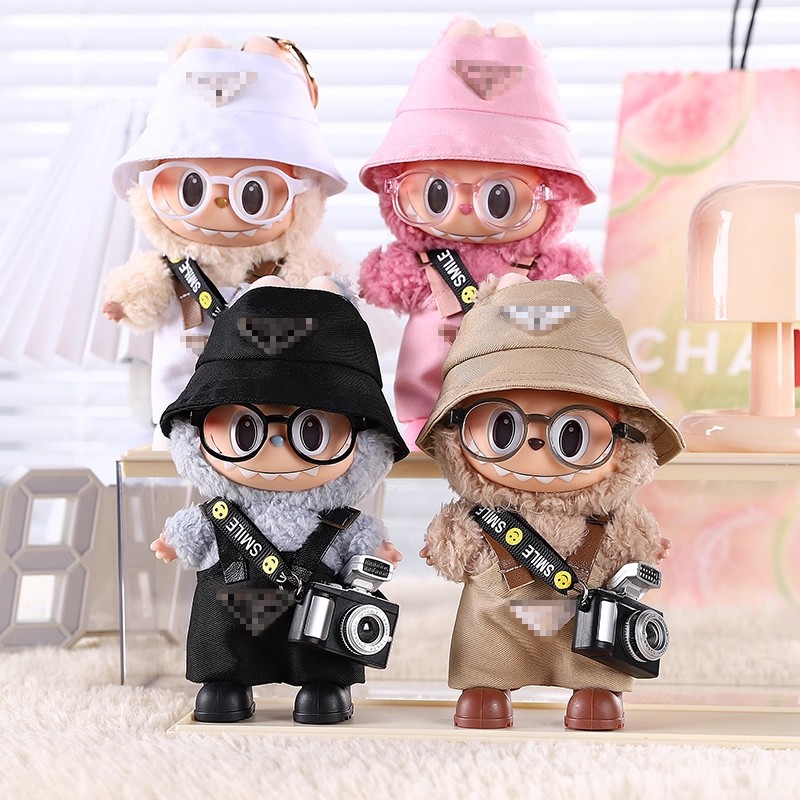 labubu拉布布一代站姿10cm潮牌娃衣背带套装搪胶公仔服装鞋帽配饰