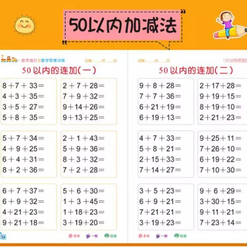 全套幼儿园口算训练20以内50以内100以内加减法数字横式竖式分解