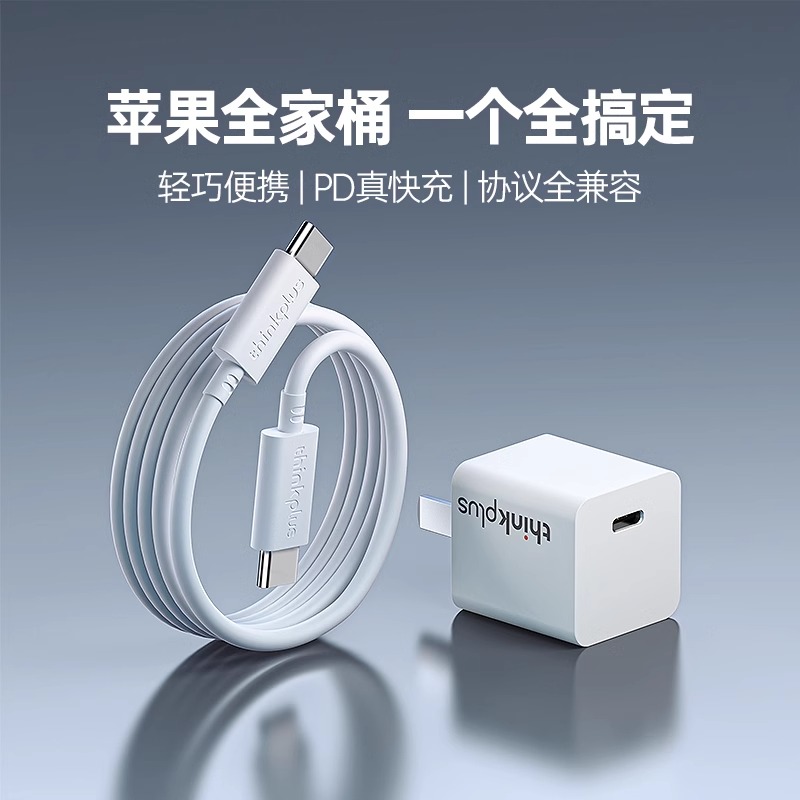 联想thinkplus适用苹果充电器iPhone17promax充电头30W氮化镓快充头套装安卓苹果16通用ipad手机typec插头20W