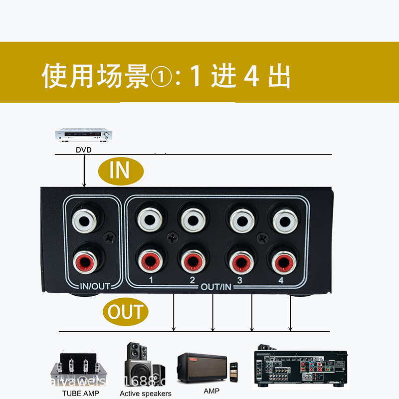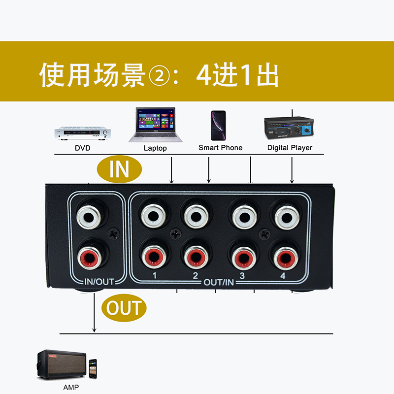 双莲花四进一出1进4出音箱分配器aux分频切换音响RCA母开关功放