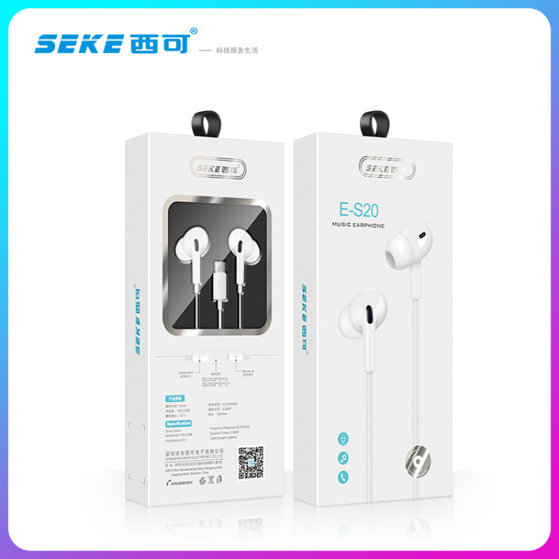 西可S20入耳式手机耳机适用P40Type-C重低音线控音乐耳机立体声