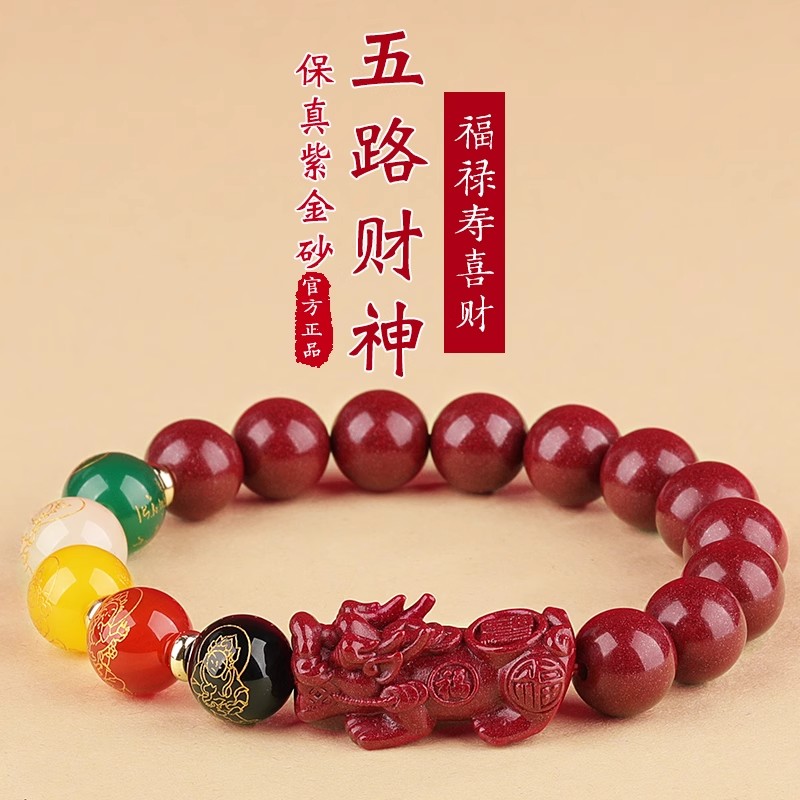高含量护身符五路财神朱砂手串本命年转运化解紫金砂手链貔貅