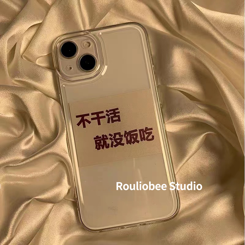 创意文字适用iphone13手机壳11不干活就没饭吃苹果12防摔华为nova9荣耀9x新款vivoy52s硅胶oppoa93套红米k30