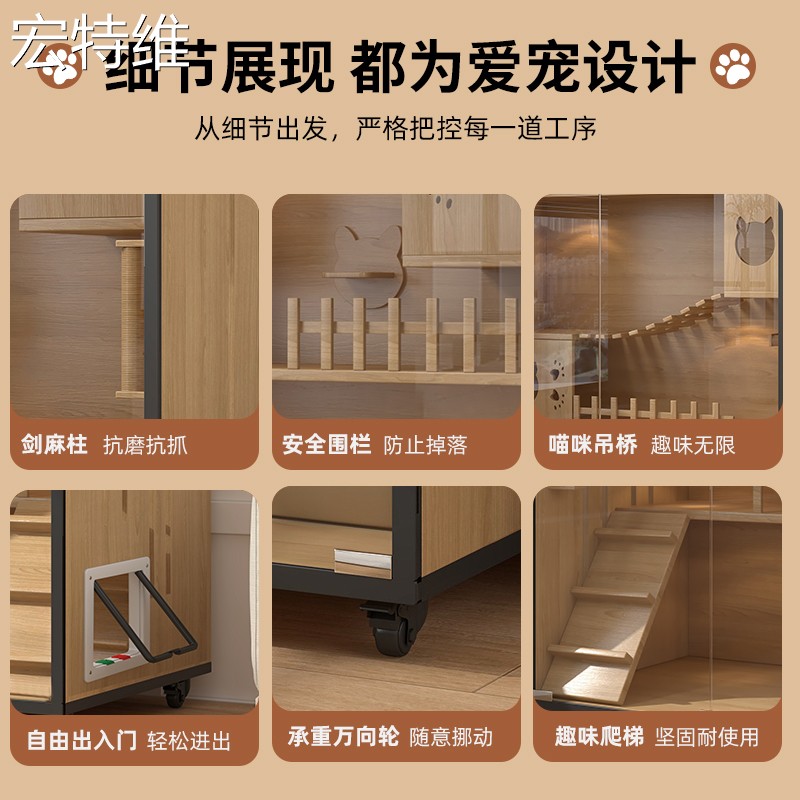 宏特维猫笼子家用室内超大空间豪华猫房屋猫舍猫窝猫爬架一体猫柜猫别墅摆件饰品
