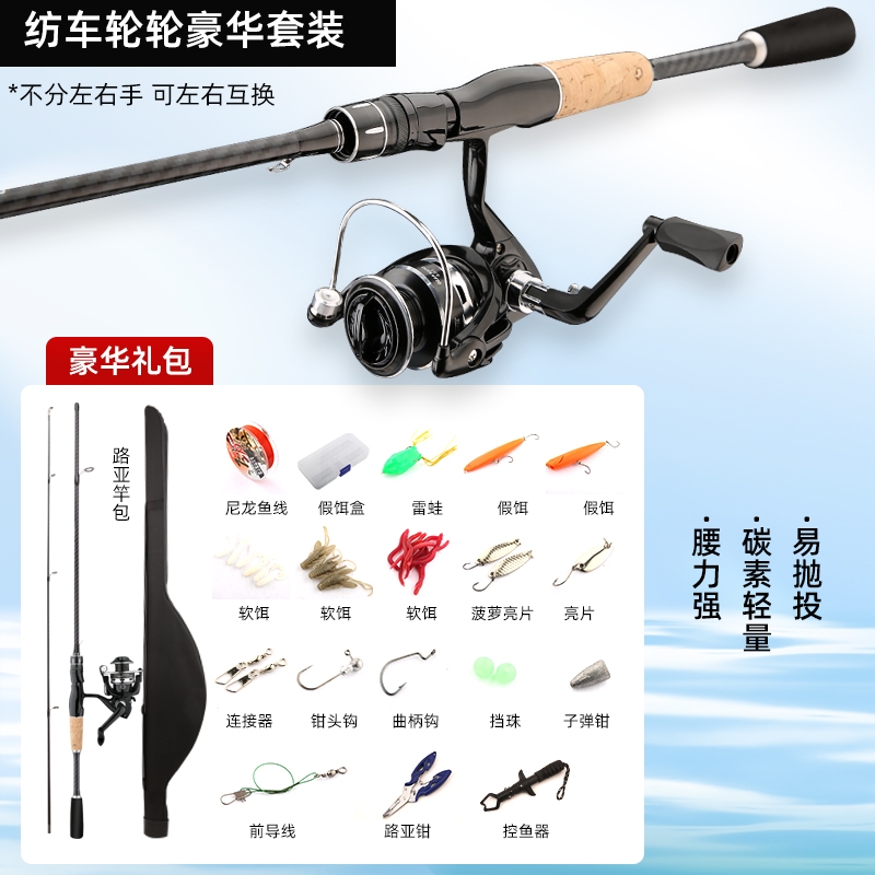路亚竿M调黑鱼鲈鱼新手套装插接直柄纺车轮枪柄水滴轮远投套装