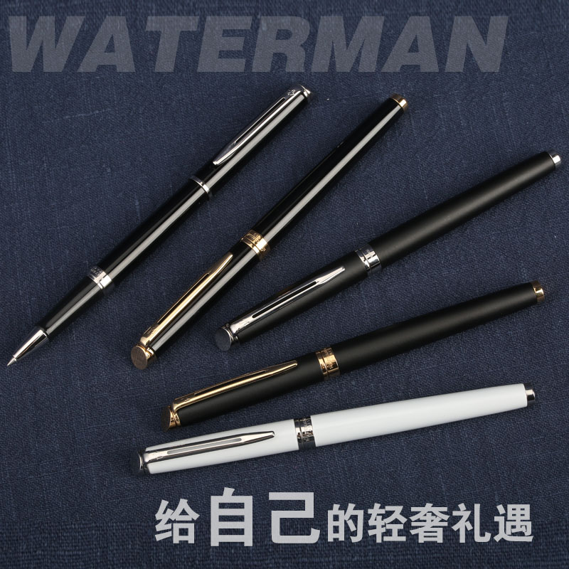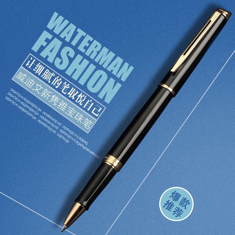 WATERMAN法国威迪文新隽雅纯黑丽雅金夹宝珠笔男女商务办公签字笔
