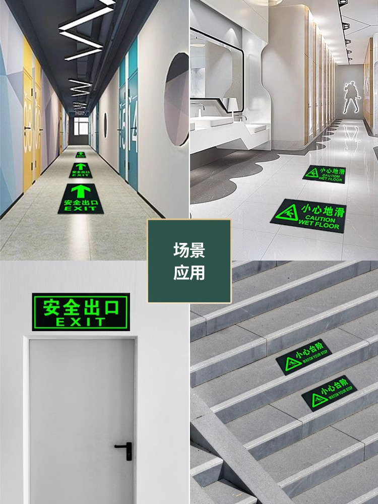 安全出口 安全楼梯 指示标识牌疏散警示贴安全消防通道指示牌墙贴荧光夜光免接电左右直行自粘式提示牌贴纸