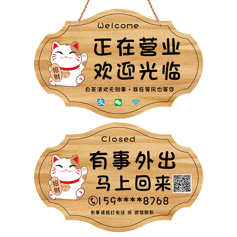 店主就在附近随叫随到挂牌店铺休息中有事外出空调开放提示牌木牌